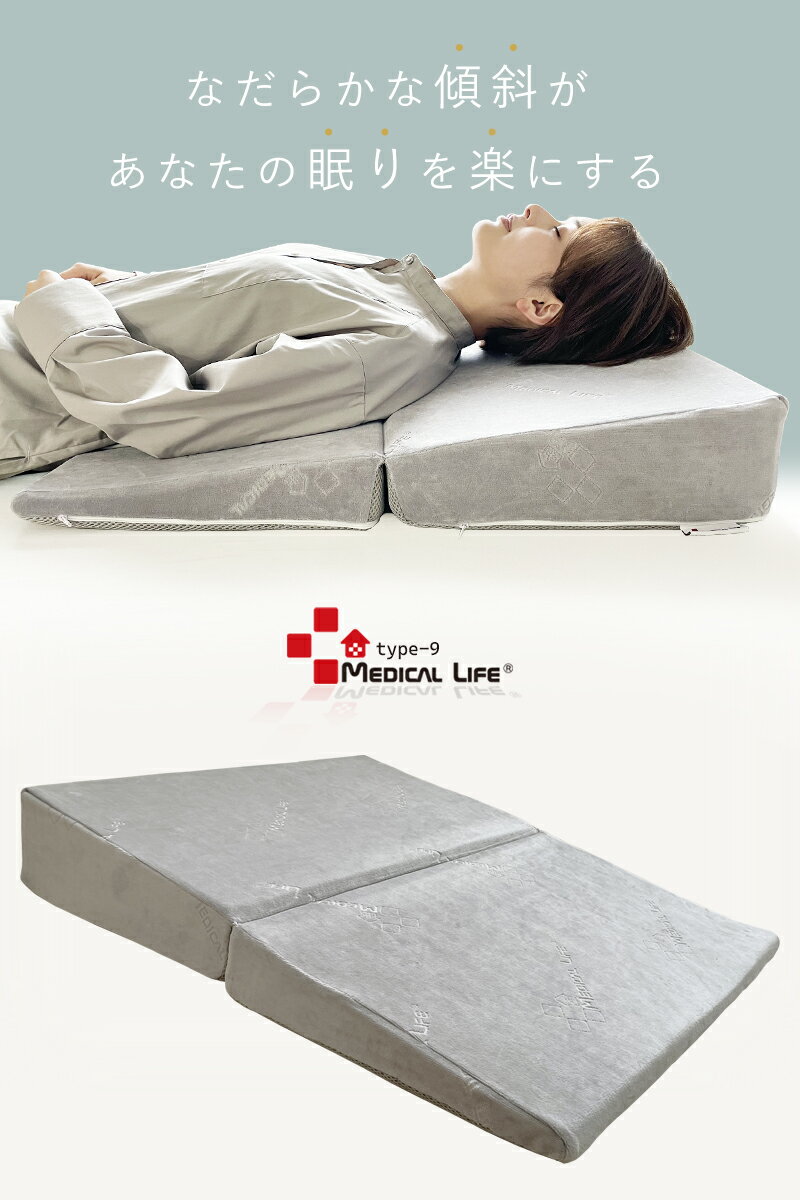 メディカルライフ ピロー type-9 傾斜枕 低反発枕 二つ折り枕 三角 クッション 逆流性食道炎 防止 マット 低反発 2つ折り なだらか まくら 傾斜 枕 妊婦 鼻づまり 咳 緩和 いびき うつぶせ 横向き 整体枕 安眠枕 大きい 寝返り 介護用 送料無料