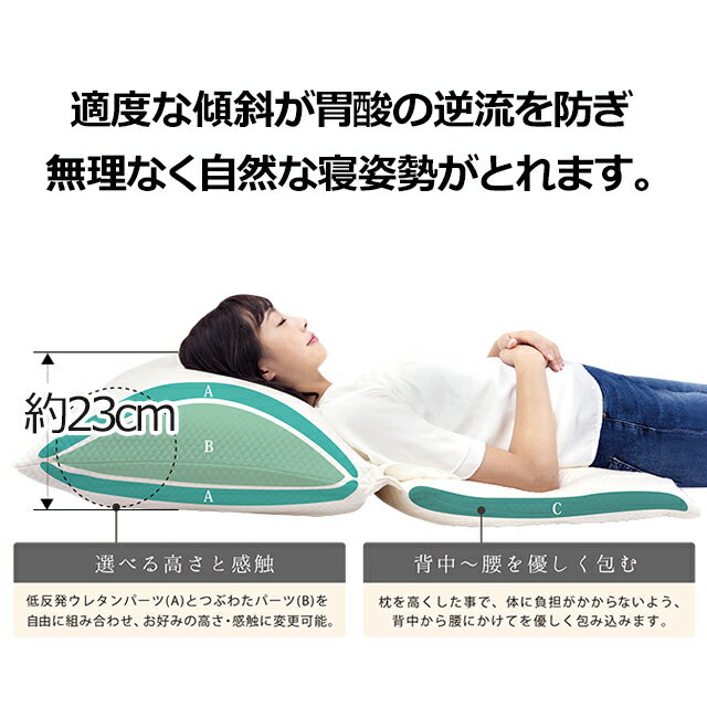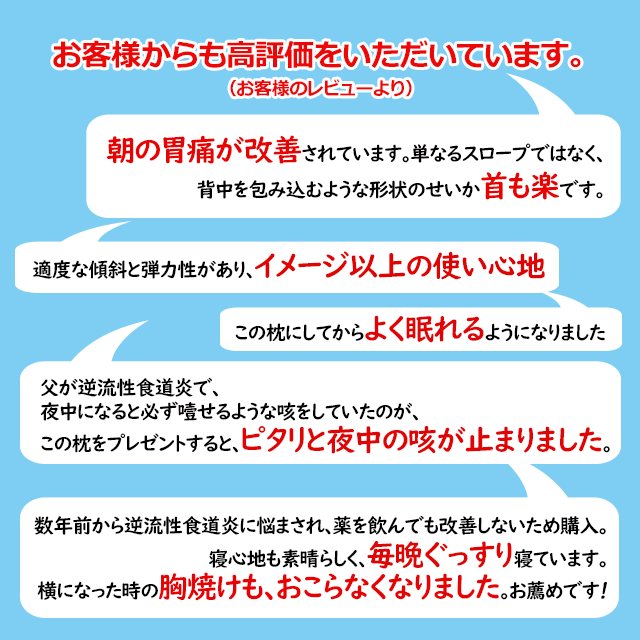 マークの説明はこちら>> 睡眠中に突然、胃酸が込み上げることはありませんか? 逆流性食道炎でお悩みのお客様の声から誕生した枕です。
