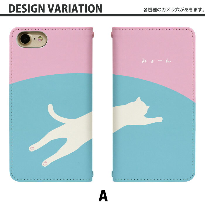 スマホケース 手帳型 全機種対応 ベルトなし のびる猫 カバー 手帳 iphone 13 12 mini ケース アイフォン エクスペリア ギャラクシー アクオス アローズ オッポ グーグルピクセル グラティーナ ベイシオ アンドロイドワン 対応 bn730
