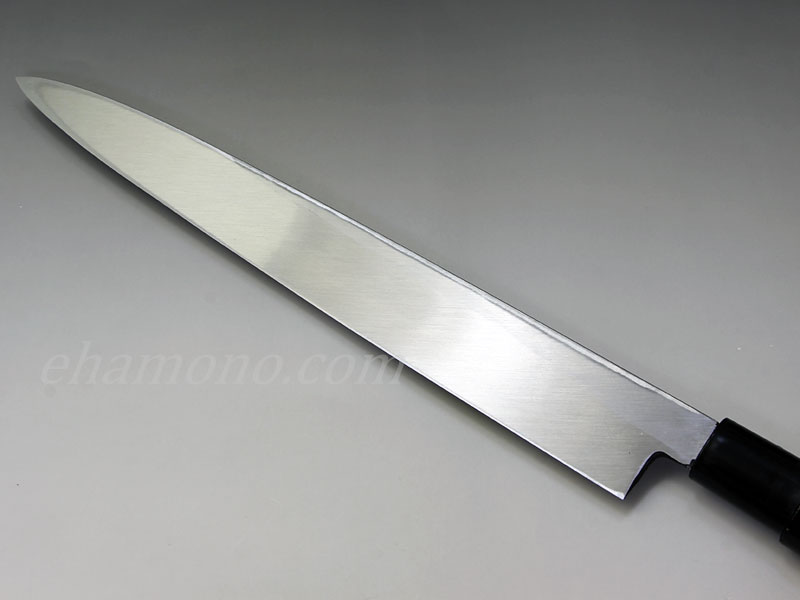 切れ味のよい白紙霞研刀身を使った標準タイプの彩柳刃包丁です。
