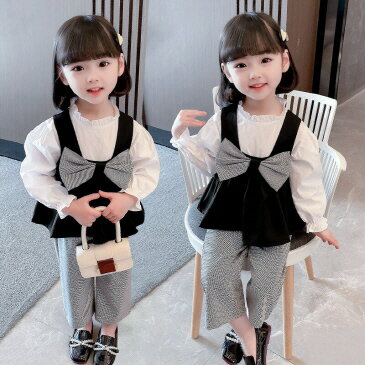 キッズ リボンフリルベストブラウス チェックパンツ 上下セットアップ フォーマル 女の子 ブラウス ショートスカート おしゃれ ガールズ ファッション ジュニア 春 夏 秋 幼稚園 韓国子供服 韓国こども服 春 アウター 90cm 100cm 110cm 120cm 130cm chuchubebe chuset0006