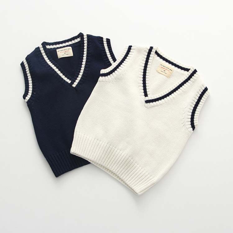 送料無料 Vネック ニットベスト 子供服 スクールニット 綿 スクールベスト ライン入り キッズ 男の子 女の子 フォーマル 90cm 100cm 110cm 120cm 130cm 140cm