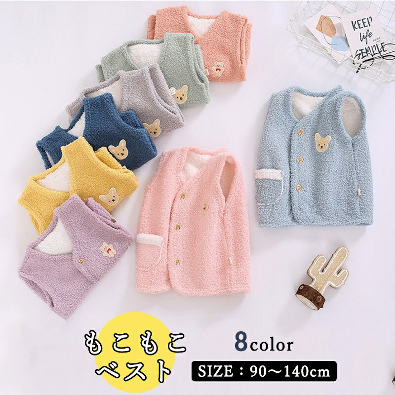 全8色 キッズ ベスト ボアベスト もこもこ トップス 羽織り 女の子 男の子 子供服 子ども服 無地 ポケット付き 上着 アウター 防寒 暖かい 秋冬 保育園 幼稚園 80 90 100 110 120 130 140 150