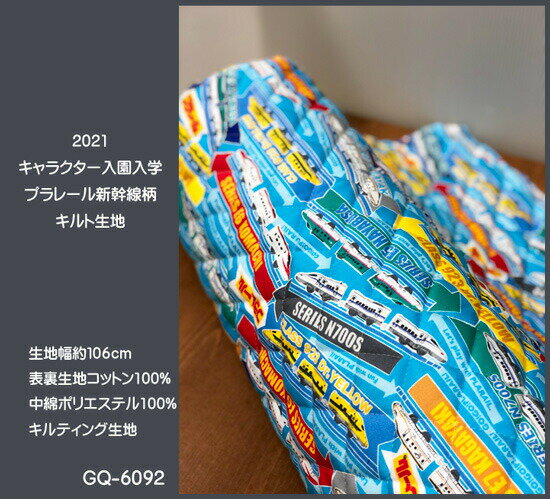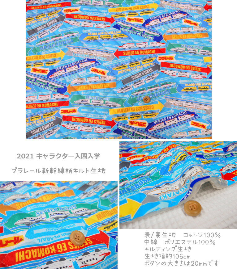 2021キャラクター生地入園入学 PLARAIL プラレール新幹線柄キルト生地 こまちやかがやき、ドクターイエロー、はやぶさ、700Sなど人気の新幹線を描いたかっこいいプリントです。