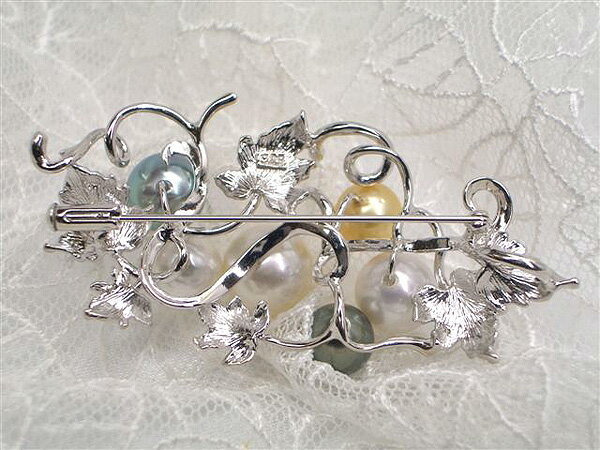 デザイン性抜群の豪華ブローチ!! SV 南洋真珠マルチカラーブローチ1 南洋真珠を使った豪華なブローチです。