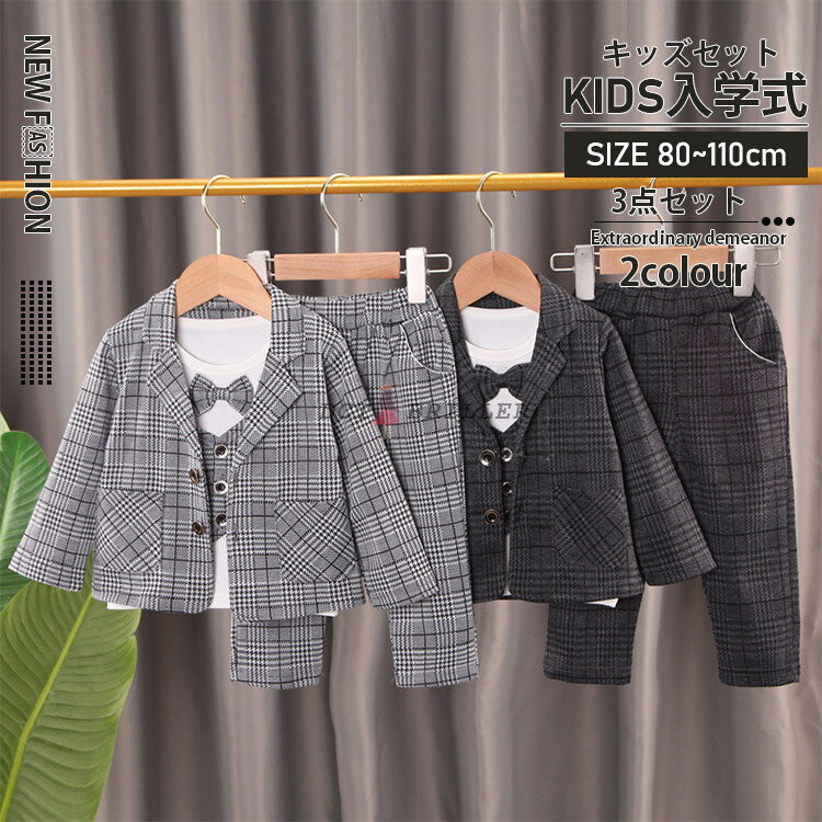 入学式 スーツ キッズ ベスト 子供服 男の子 フォーマル セット 子供スーツ フォーマルウエア こども 男児 入学式 入園式 結婚式 卒園式 卒業式 小学校 小学生 発表会 3点セット 2色 S M L XL