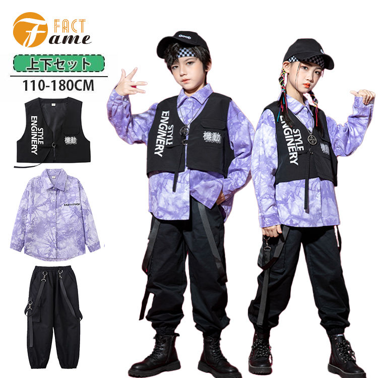 ダンス衣装 キッズダンス衣装 セットアップ 女の子 男の子 シャツ+ベスト+パンツ 3点セット 長袖 ヒップホップ 演出服 ジャッズ チアガール 子供服 スポーツウェア 派手 ストリート 原宿系 レッスン ダンスウェア hiphop 110-180