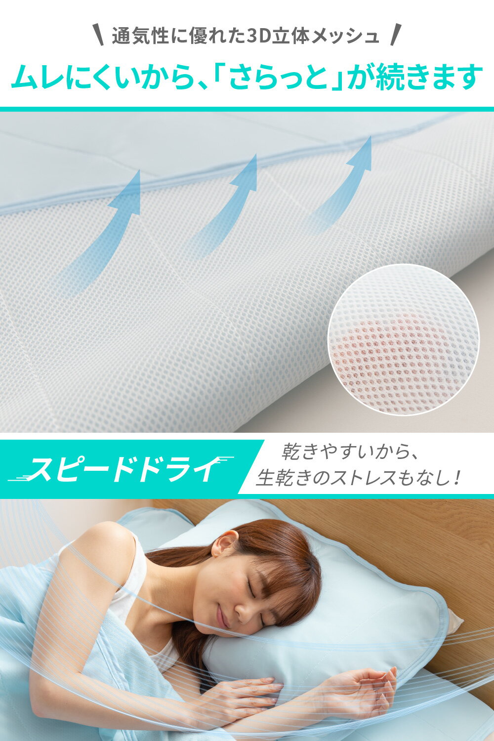 ひんやり乾きやすいエアー枕パッド 2枚組 約43×63cm 接触冷感 まくらカバー 寝具 ナイスデイ ウォッシャブル 低ホルムアルデヒド