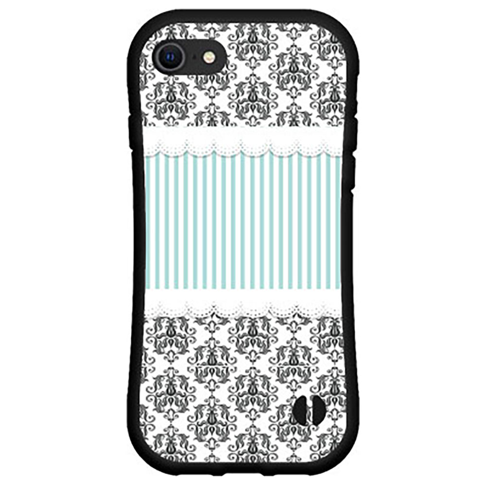 落としても割れにくい驚きの衝撃吸収力豊富なオリジナルデザイン耐衝撃 ハイブリッドケースiPhone SE (第3世代)アイフォン エスイー 2022 SE3docomo au SoftBank 楽天モバイルダマスク柄レースとストライプ