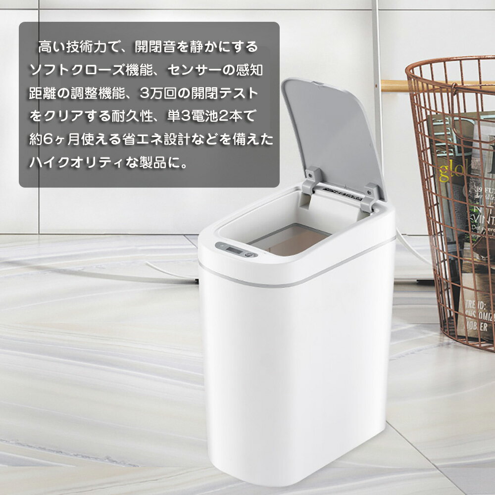 人体に影響はありませんが、気になる場合は風通しの良い場所で陰干しして頂くことで、通常より早くにおいが消えます 特徴 いろんな場所に置けて、手が触れずに衛生的 人感センサー開閉式のごみ箱 衛生的な人感センサー開閉式のごみ箱に12L容量のミニサイズが新登場!場所を取らない大きさで、気になるところに気軽に置けます。