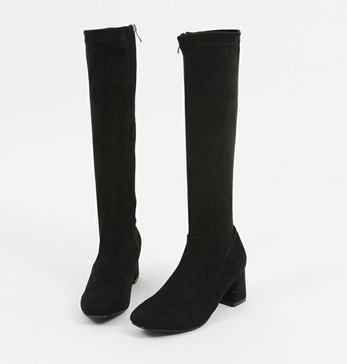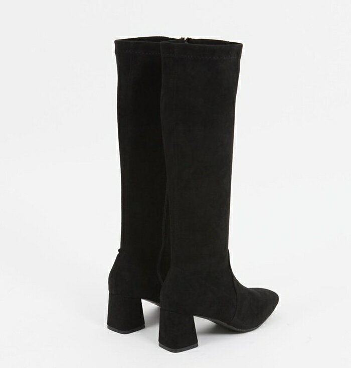 ロングブーツ スエード 太ヒール 6cm チャンキーヒール 黒 ブラック スクエアトゥ 大きいサイズ レディース ブーツ ロング きれいめ シンプル フィットブーツ