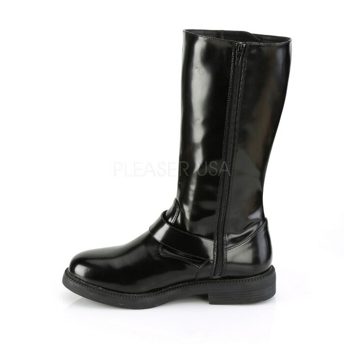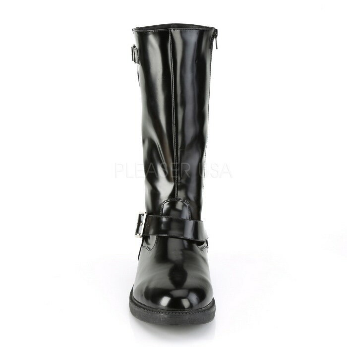 Pleaser プリーザー ロングブーツ メンズ 男性 用 2.5cm ヒール 黒 ブラック つや消し 合皮 フェイクレザー ストラップ サイドジッパー 大きいサイズ 靴 シューズ 衣装 仮装 コスプレ イベント ステージ 26cm 27cm 28cm 29cm 30cm 31cm 32cm OFFICER-201 OFC201/BPU 取寄
