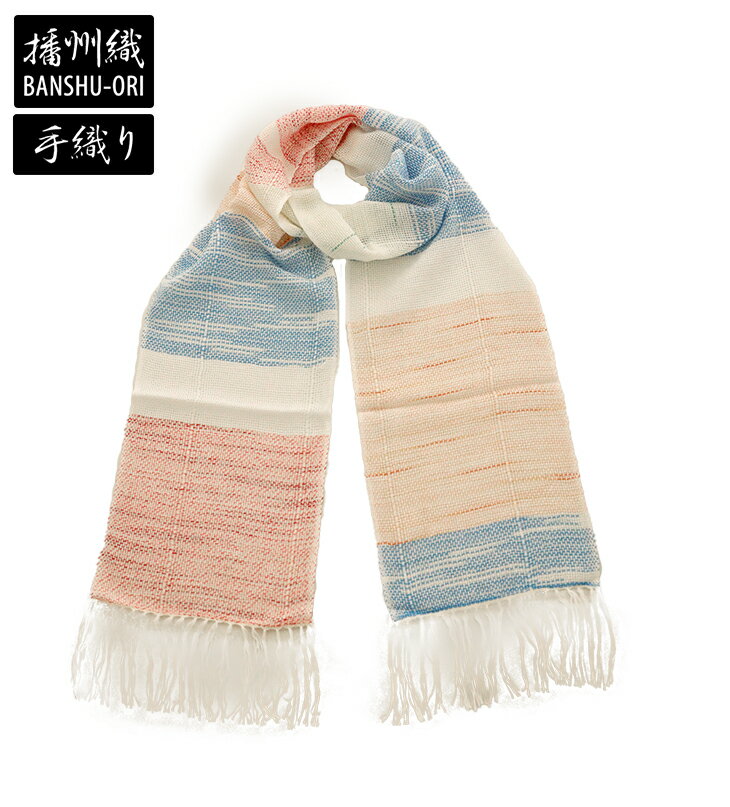 【送料無料】播州織 ストール レディース メンズ 35 マルチ系 柔らかい 手触り 一点物 手織り ばんしゅうおり ユニセックス 男女兼用 和 日本 伝統