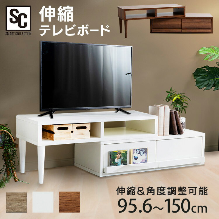 伸縮TV台 天然木脚タイプ ETVB-9015送料無料 テレビボード 収縮タイプ 天然木脚 角度調整 スライドボード 木目調 レイアウト 収納スペース 引出し オープンラック ウォルナット オーク ナチュラル【D】