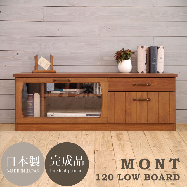 【送料無料】ヴィンテージ風 おしゃれなテレビ台 味のあるデザイン テレビボード 完成品 120サイズ 日本製 木製 デッキ収納 ガラス扉 ディスプレイ モダン アルダー材 高級★MT(モント)120ローボード