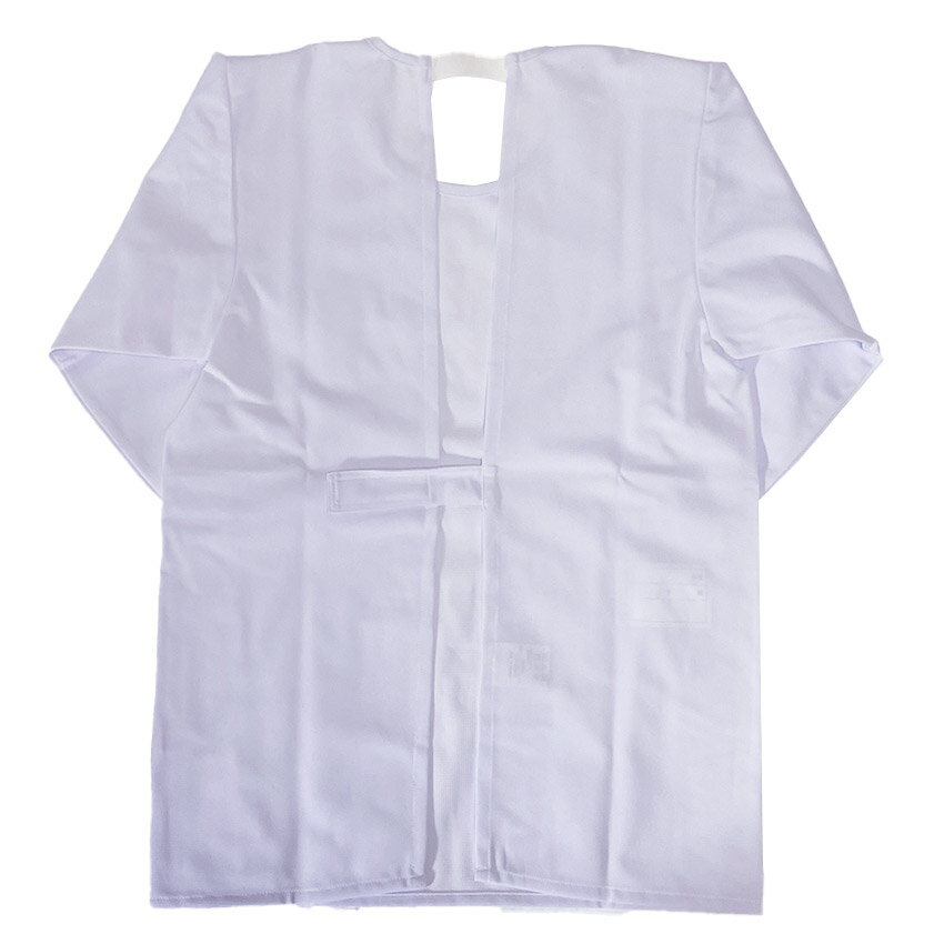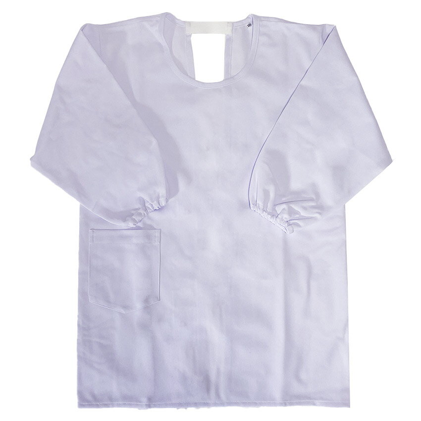 【送料無料】給食着 割烹着 S-3L/ノーアイロン TioTio加工 抗菌 抗ウイルス 消臭 防汚 速乾 帯電防止 蛍白色 無地 学生 小学校 中学校 学校 給食 白