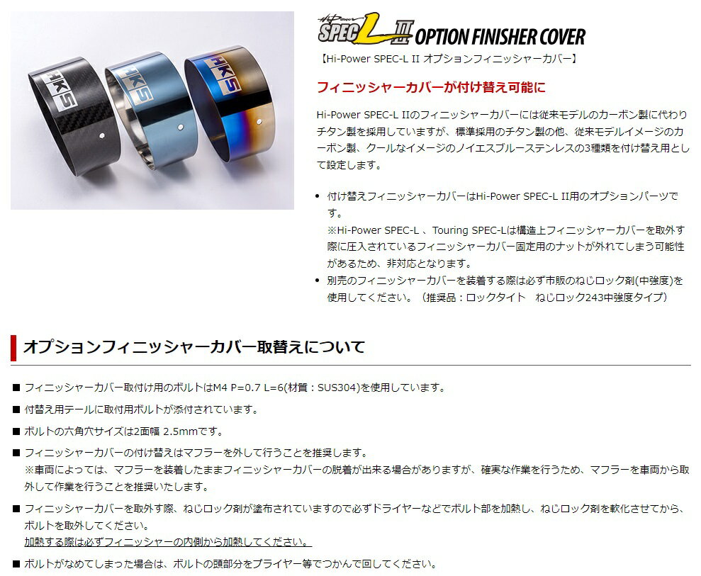 エッチケーエス スイフトスポーツ ZC33S オプションフィニッシャーカバー 34002-AK012 HKS Hi-Power SPEC-L II ハイパワースペック-L