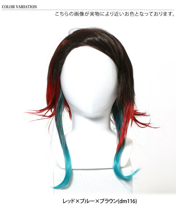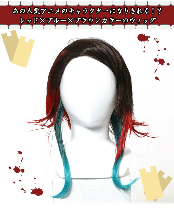●あの人気アニメのキャラクターになりきれる!?レッド×ブルー×ブラウンカラーのウィッグ お好みの長さにカット、調整、セットして楽しむこともできます。