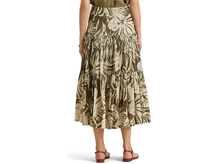(取寄) ローレン ラルフローレン レディース パーム リーフ-プリント コットン ボイル スカート LAUREN Ralph Lauren women Palm LeafPrint Cotton Voile Skirt Olive Multi