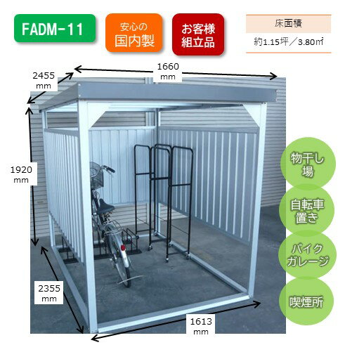 ●屋根寸/幅1660×高さ1920×奥行2455mm ●内 寸/幅1496×高さ1870×奥行2230mm ●土 台/間口1613×奥行2355mm ●広 さ/3.80平米(1.15坪) ※転倒防止のためアンカー工事は必ず行ってください。