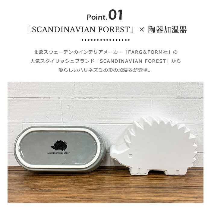 商品名 《En Fance》SCANDINAVIAN FOREST 気化式陶器加湿器 サイズ・重量 (本体)W13.8×D4.5×H9.2cm / 385g (トレー)W13×D7.5×H2.5cm 素材 陶器 生産国 中国 商品様式 完成品 備考 素焼きの陶器にじわじわ染み込み、お部屋をほどよく潤してくれる自然気化式の陶器加湿器と北欧スウェーデンのインテリアメーカー「FARG&FORM社」のスタイリッシュブランド「SCANDINAVIAN FOREST」がコラボ。