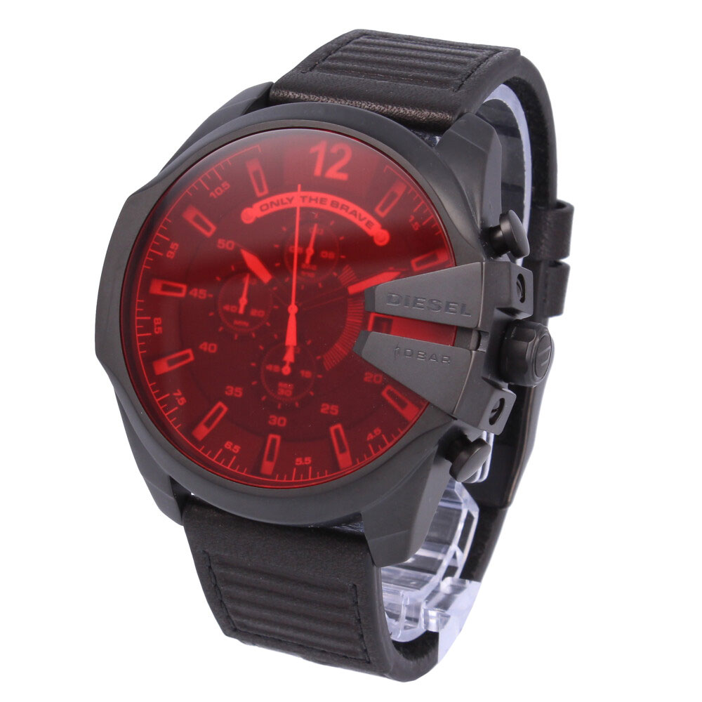 DIESEL ディーゼル MEGA CHIEF メガチーフ腕時計 時計 メンズ 防水 クオーツ クロノグラフ レザー ブラック レッド DZ4460Iプレゼント ギフト 1年保証 送料無料