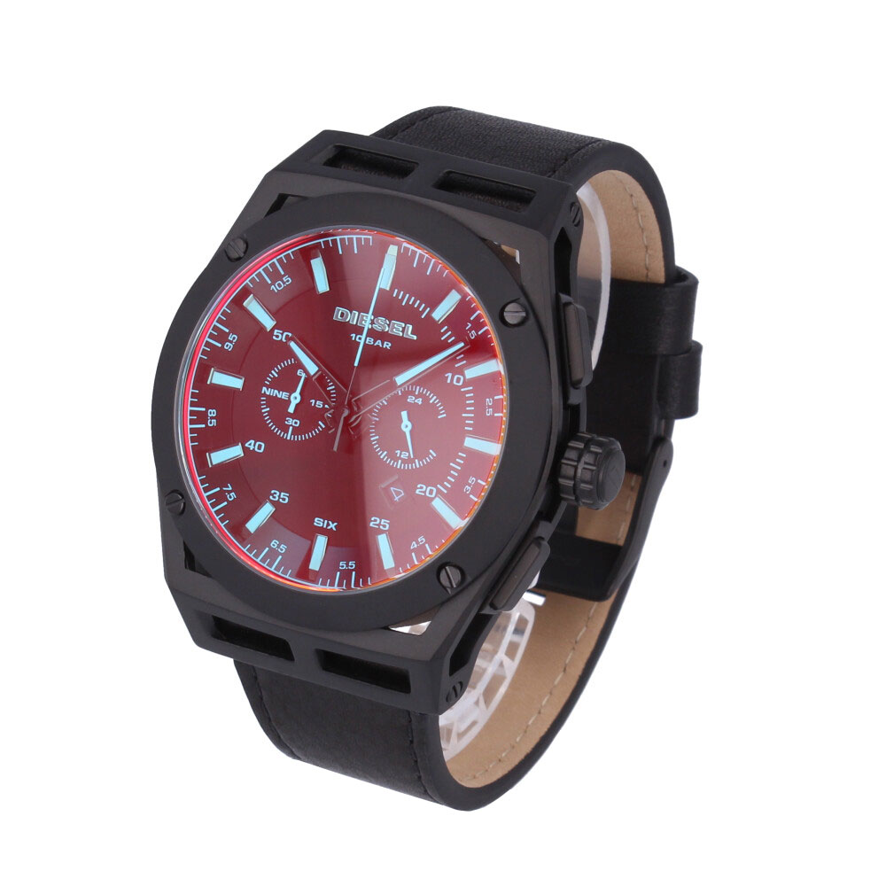 特徴 ムーブメント アナログクオーツ 防水 10気圧防水 サイズ 本体サイズ 縦×横×厚(ラグ・リューズ除く):約48×48×14mm 重さ 約114g バンドサイズ 最小~最大:約14~19cm 素材 ケース素材 ステンレス ケースカラー ブラック 文字盤カラー ブラック バンド素材 レザー バンドカラー ブラック 付属品 マニュアル 日本語・英語(全11ヶ国語) 商品ケース ディーゼル製ボックス 保証書 弊社1年保証 備考 仕入情報 弊社輸入商品(新品並行輸入)デニムから小物まで幅広いコレクションを展開する1978年創業のイタリアの老舗カジュアルブランド、DIESEL。