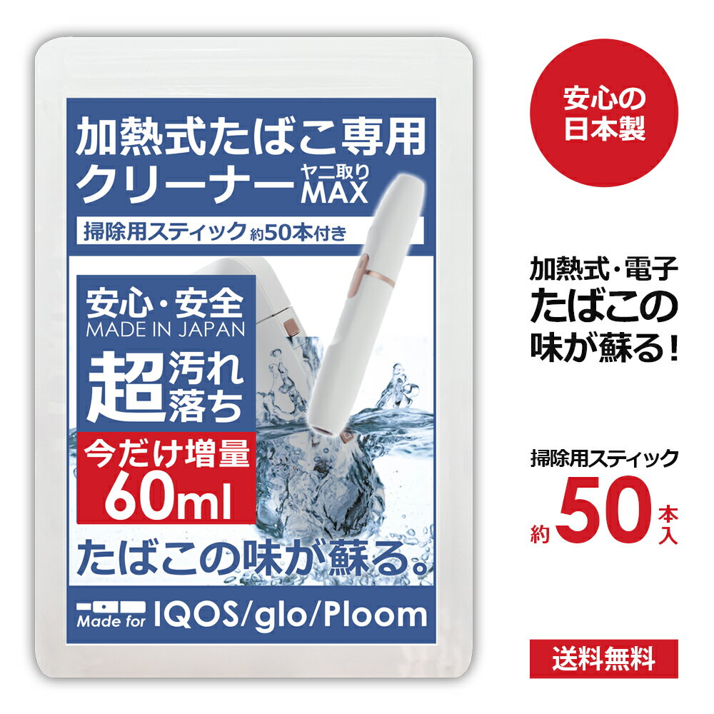 加熱式タバコ 掃除 アイコス クリーナー 30ml クリーニング スティック ツール 細綿棒 約50本入り 除菌 消臭 電子たばこ IQOS グロー glo Ploom 液体クリーナー 日本製 ヤニ取りMAX 詳しく見る
