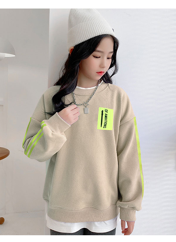 あったか 裏起毛 蛍光MA-1 トレーナー パーカー スウェット キッズ ジュニア トップス 長袖 防寒 フード なし 幼稚園 小学生 中学生 子供 服 男の子 女の子 ガールズ 子供服 おしゃれ 可愛い かわいい かっこいい 流行 ファッション 着回し 春 秋 冬 お揃い 兄弟 韓国子供服