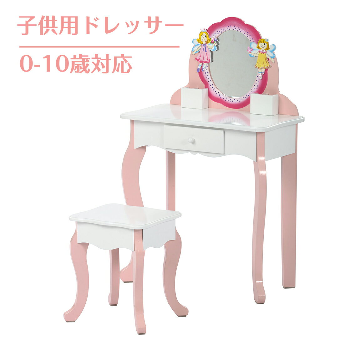 ドレッサー おもちゃ おままごと ドレッサーテーブル 姫系 化粧台 子供用 おしゃれ 一面鏡 鏡台 椅子&引き出し付き コンパクト 姿見 天然木製 可愛い 組立品 ピンク