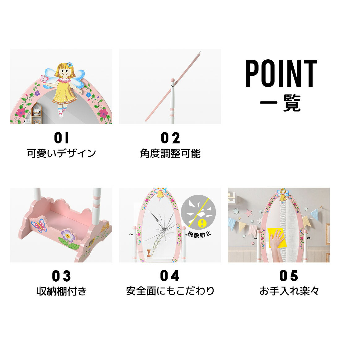鏡 収納 おしゃれ 飛散防止 スタンドミラー 子供用ドレッサー かわいい 鏡 子供 木製 おままごとミラー コスメ収納 リビング 賃貸 新生活 誕生日 知育 おもちゃ キッズ 女の子 お祝い 誕生日 プレゼント ギフト 子供