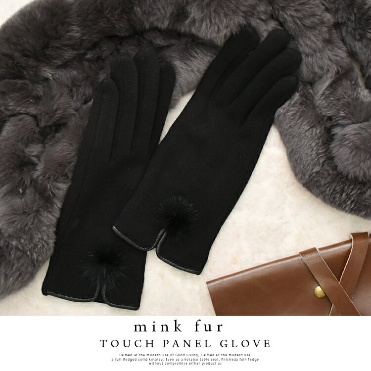 手袋 レディース スマホ対応 かわいい 抗菌 自転車 運転 グローブ ミンクファー付き オシャレ てぶくろ タッチパネル 綿 ポリエステル やわらか シンプル 大人 上品 きれいめ 防寒 防寒グッズ【メール便】あったか brez-xgr-341