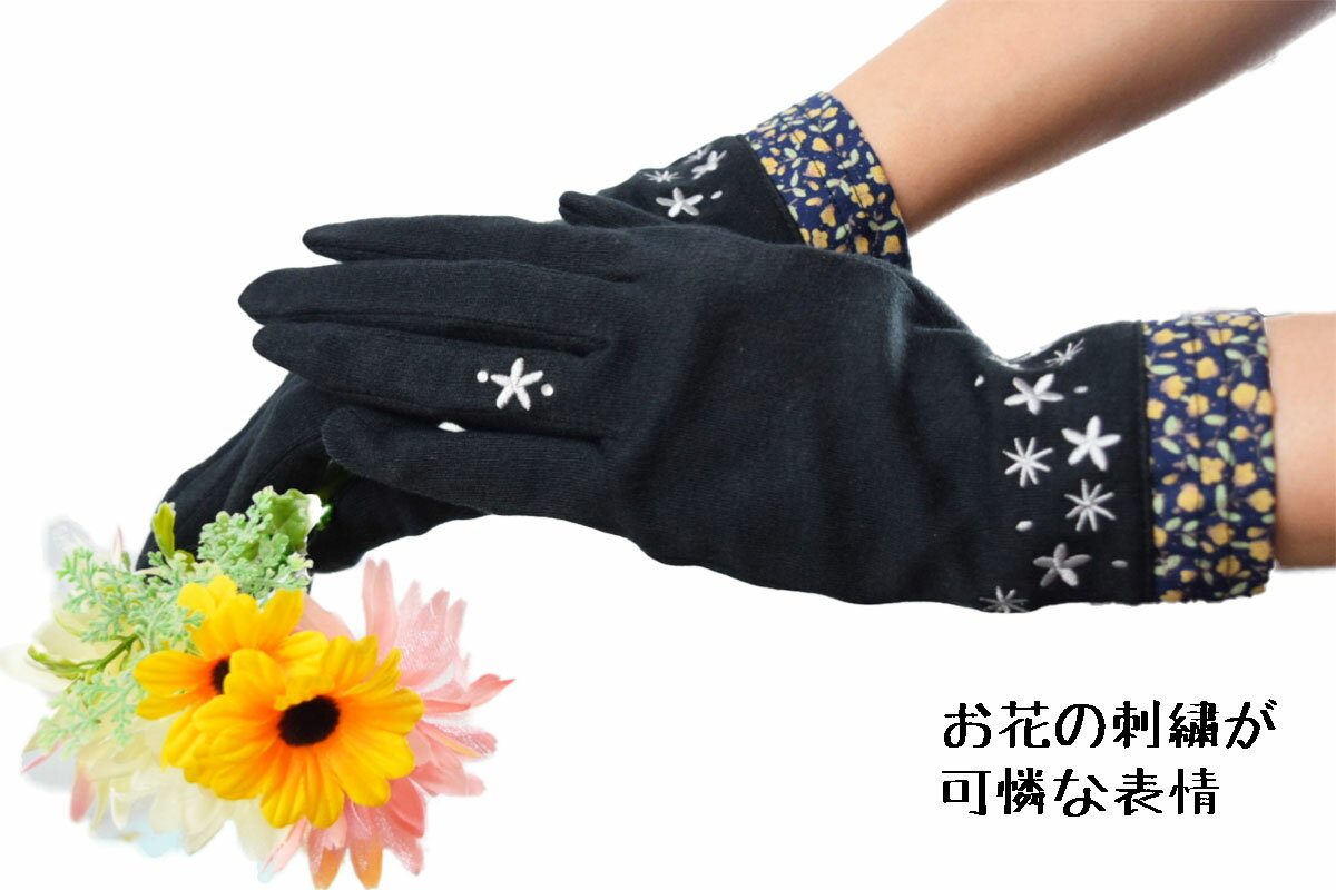 スマホ対応 UV手袋 (スマホ 花刺繍 花柄 ショート UV カット かわいい 花 すべり止め 日除け 夏 綿)