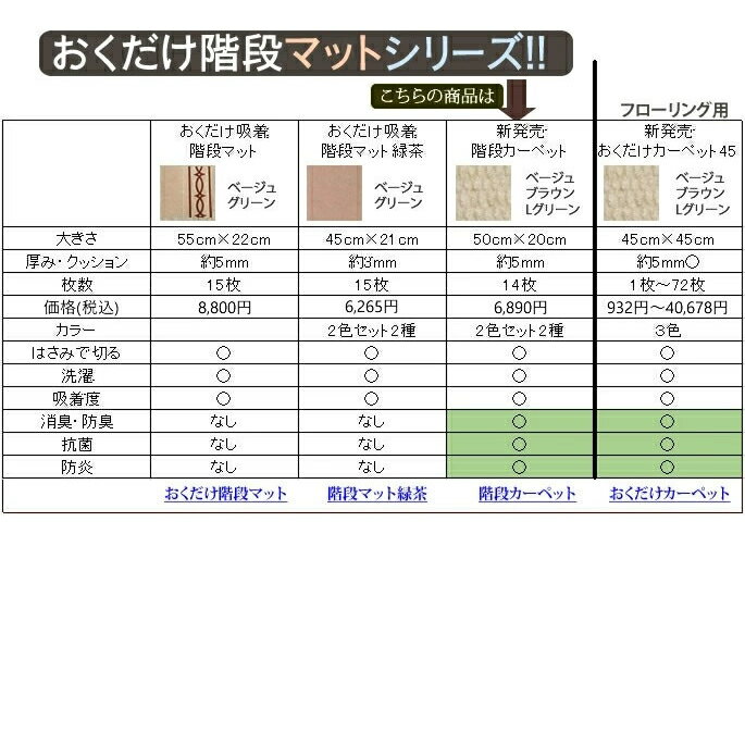 ■おくだけ階段マット その他のアイテムはこちら ・おくだけ消臭階段マット ・緑茶消臭コーナー付き階段マット ・おくだけ階段マット 犬 階段/カーペット タイルマット 消音 消臭、防音、滑り止め6,890円(税込)送料無料 8,197円(税込)送料無料 8,800円(税込)送料無料 6,265円(税込)送料無料