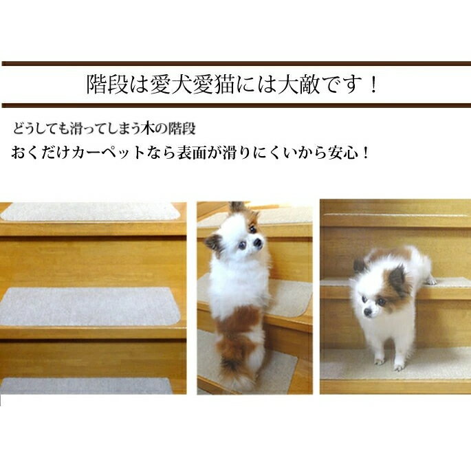 ■お支払方法や送料設定について ■購入後も安心の返品・交換について ■商品配送のお届け目安について ■帝塚山ハウンドカム会社概要 おくだけ階段カーペット 14枚入り ペットの関節を守る 洗濯機で洗えて!取りつけ・取りはずしも簡単! なぜ吸着するの? ノリがついているわけでもないのに、床にピタッと吸いつく不思議なマット。