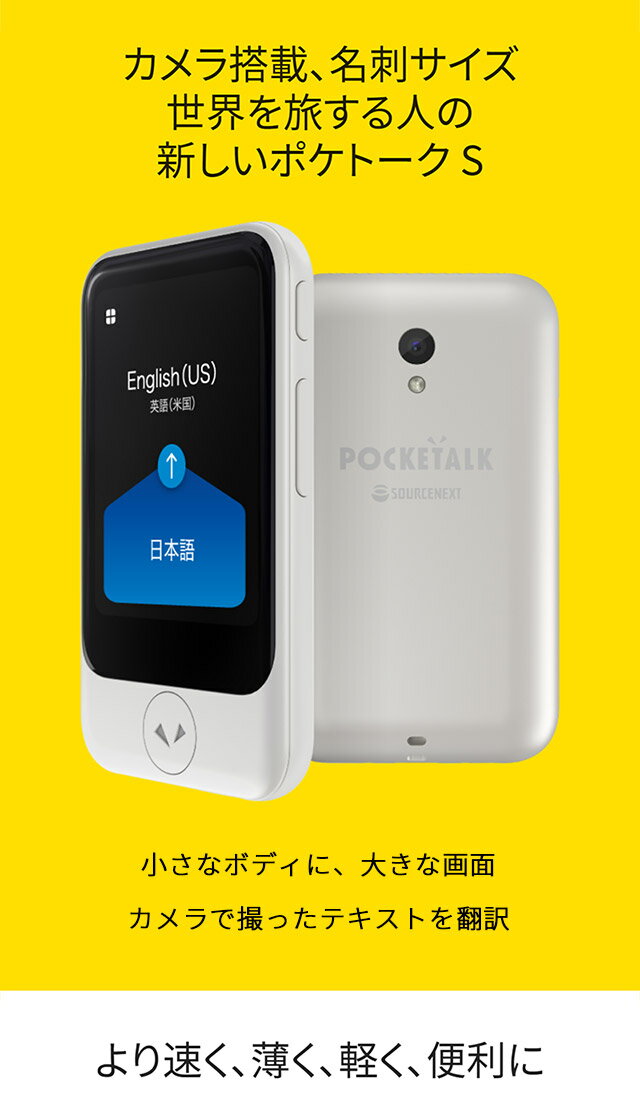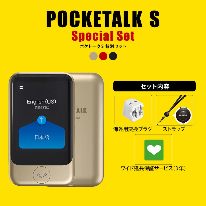 【公式】【特別セット】 POCKETALK S ポケトーク + グローバル通信 SIM 2年 + 延長保証 3年 + ストラップ + 海外用 変換プラグ[AI通訳機]ソースネクスト 翻訳機 語学学習 海外旅行 英語 中国語 韓国語